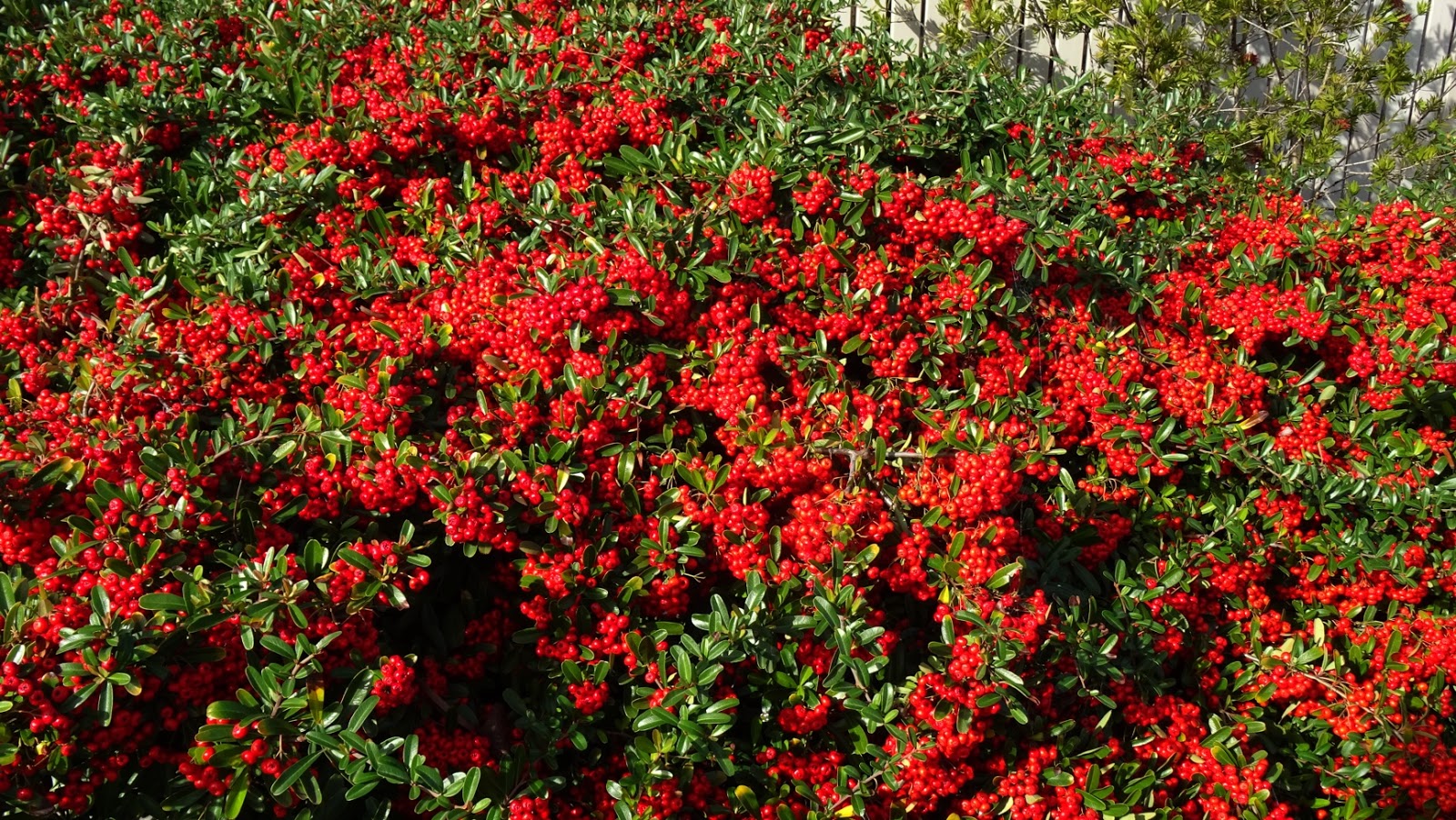 Pyracantha coccinea is the European species of Firethorn that has been cultivated in gardens since the late 16th century. The tree has small white flowers. It produces small, bright red berries. The fruit is bitter and astringent, making it inedible when raw. The fruit can be cooked to make jellies, jams, sauces and marmalade.